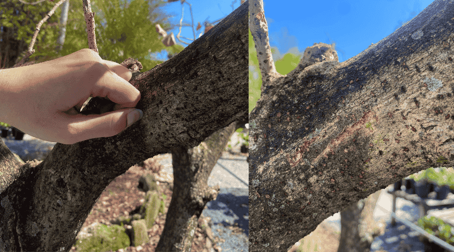 - Lightly scratch the outer bark.