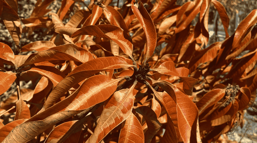 - Brown, dry foliage